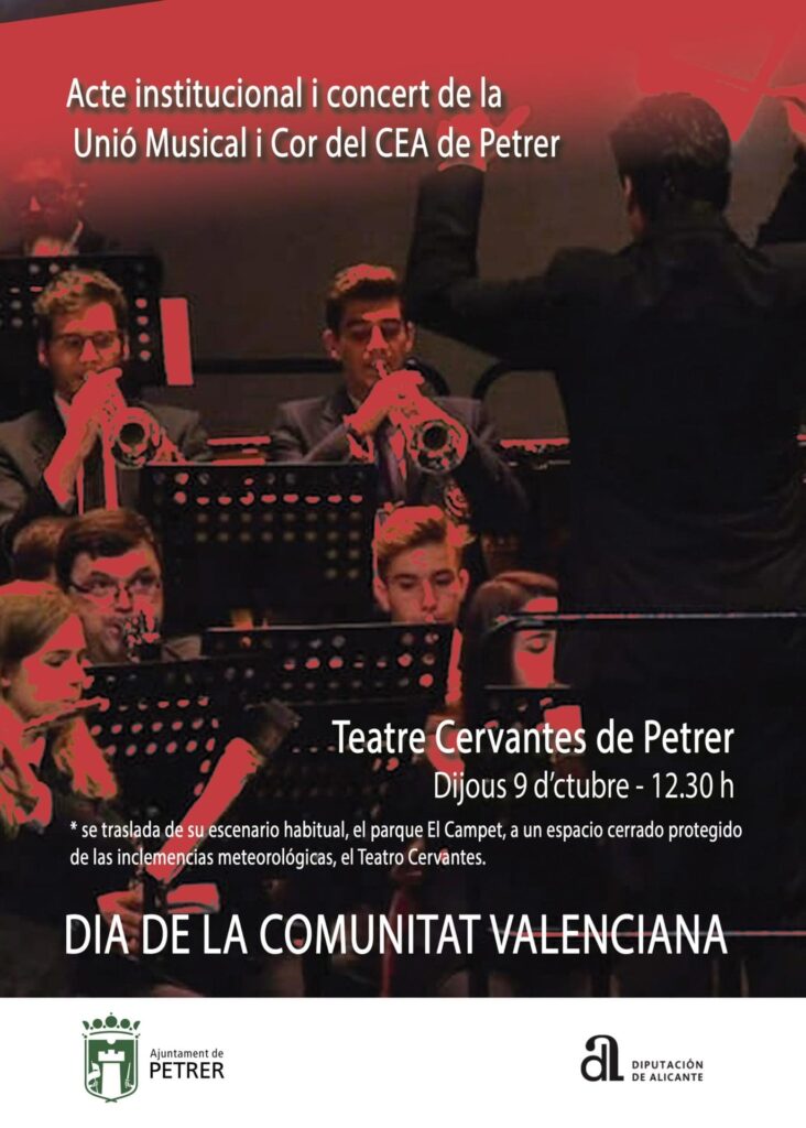 Amb motiu de la celebració del Dia de la Comunitat Valenciana, el Teatre Cervantes acull un concert molt especial protagonitzat per la Societat Unió Musical de Petrer i el Cor CEA de Petrer.
