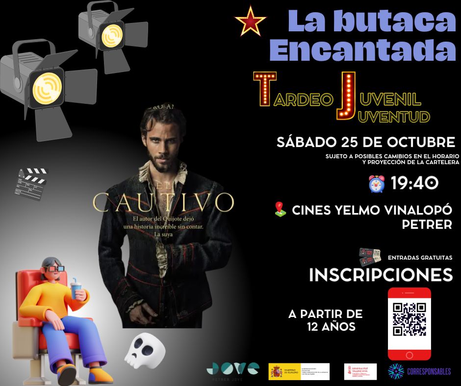 La Regidoria de Joventut us convida a gaudir d’una tarda de cinema diferent amb La Butaca Encantada, una activitat gratuïta pensada per a joves a partir de 12 anys. Vine amb els teus amics, passa una estona divertida i comparteix l’experiència del cinema en grup 🎞️