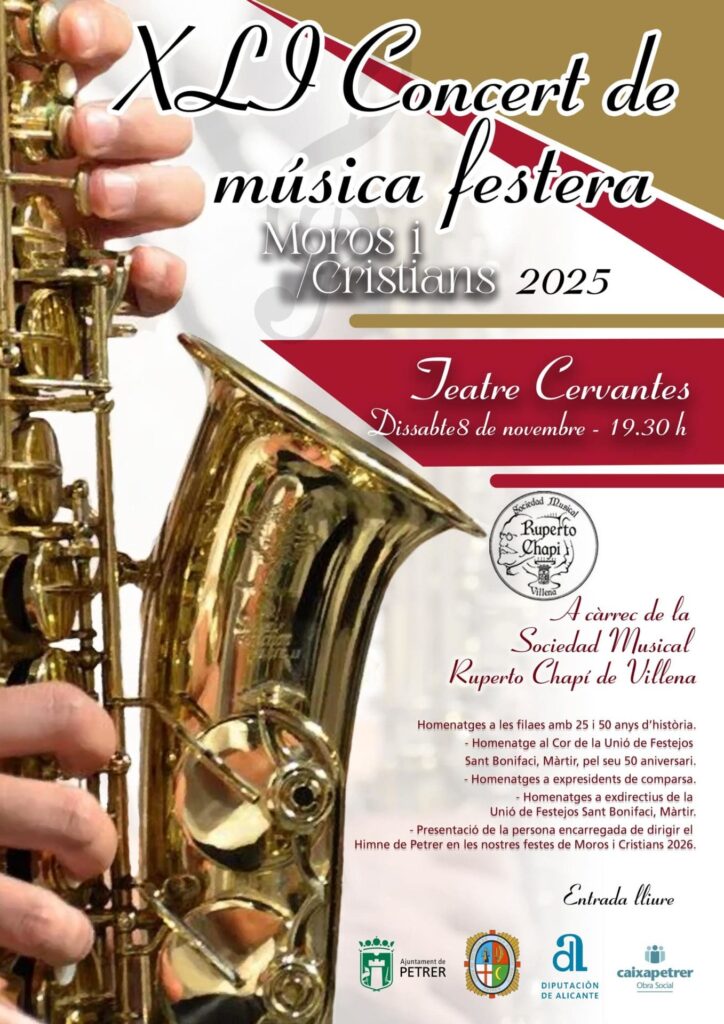 El Teatro Cervantes acoge un concierto de música festera a cargo de la Sociedad Musical Ruperto Chapí de Villena, una cita imprescindible para los amantes de la música tradicional y las fiestas populares.