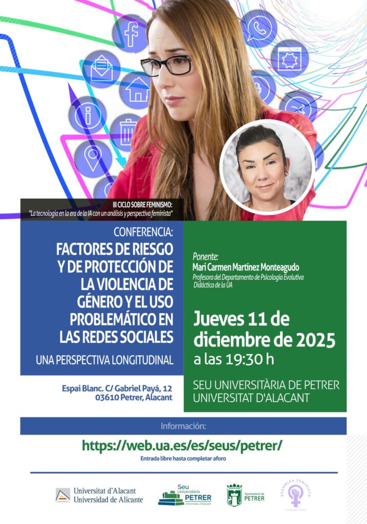 Dentro del III Ciclo sobre Feminismo: “La tecnología en la era de la IA con un análisis y perspectiva feminista”, esta conferencia profundiza en cómo las redes sociales pueden influir en la violencia de género desde una perspectiva longitudinal, analizando tanto los factores de riesgo como los elementos de protección.