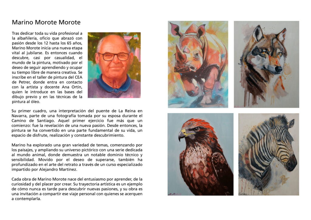 El Centro Cultural acoge la exposición de pintura de Marino Morote, una muestra que invita a descubrir su universo creativo a través del color, la materia y la expresión plástica. Una oportunidad para acercarse a la obra de un artista con una mirada personal y una sólida trayectoria pictórica.