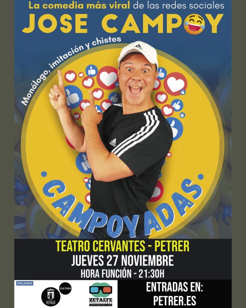 Prepárate para una noche de risas sin parar con José Campoy, uno de los cómicos más virales de las redes sociales. Llega al Teatro Cervantes con su nuevo espectáculo Campoyadas, un show que mezcla monólogo, imitaciones y chistes con el humor fresco y cercano que lo ha convertido en fenómeno en Internet.